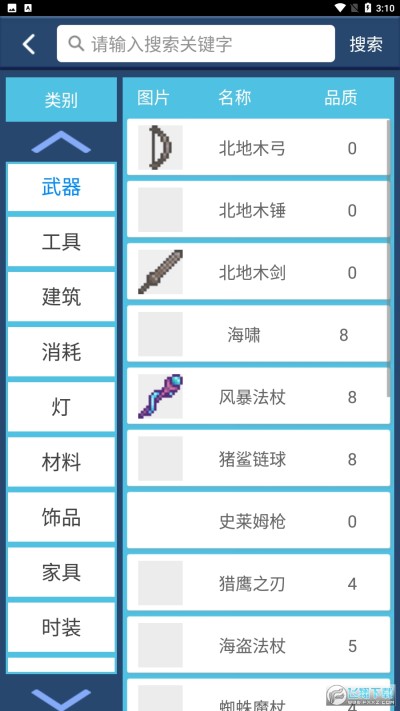 武器查询,是不是想要有更好的武器来防身,这里展现了所有武器的属性。