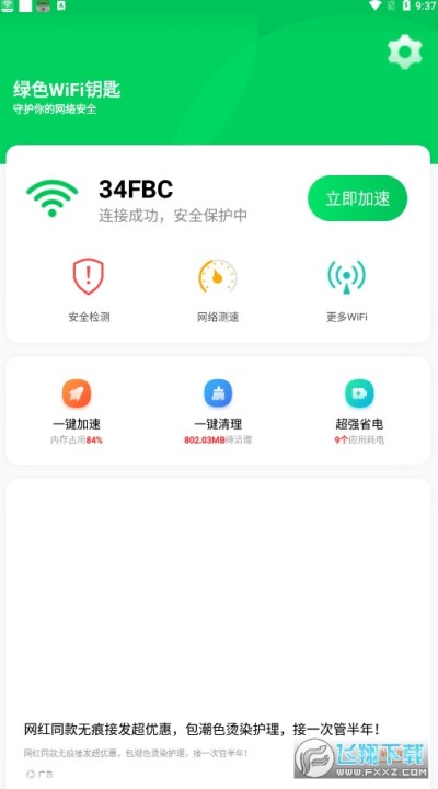 绿色WiFi钥匙app:随时在线了解不同的wifi快速管理手机软件,在这里可以更好的知晓各类不同的上网服务,针对不同的wifi可以快速在线一键连接,享受到的各类不同的网络服务更加的简洁化,而且还可以随时进行各类不同的垃圾进行快速的清理,其信息也会更省心。