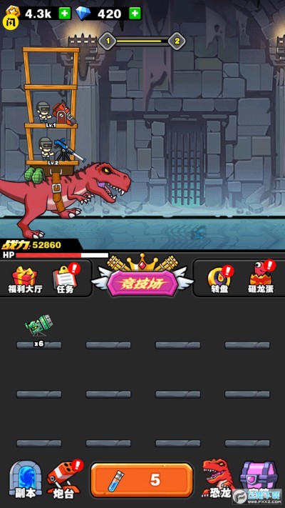 恐龙大炮无限金币无限钻石破解是一款卡通风格放置玩法的休闲益智游戏,玩家需要在游戏里使用恐龙消灭敌人,不断的建造升级自己的塔楼,搭配不同的恐龙、武器和怪物,消灭更强大的外星人敌人,丰富的升级内容和解压的玩法等玩家们体验!