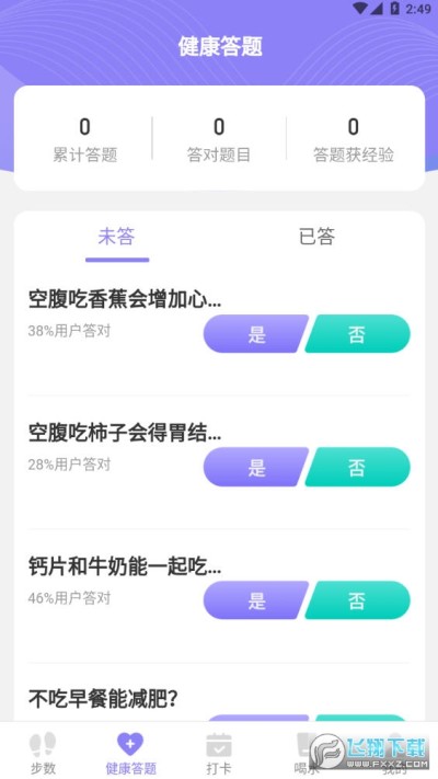 3.还能在线去参加大量的趣味答题,学习更多的健康知识,改变自己不好的生活习惯。