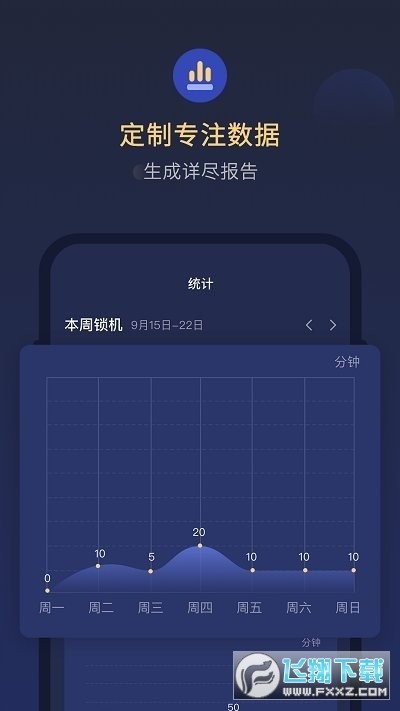 【专属报告】在每次用户使用后本产品会为用户定制专属报告,自动生成图表,人性化分析本次锁机情况,帮助用户养成良好的生活习惯。