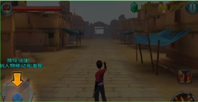 战斗画面点击左下方的按钮控制角色移动,点击界面右下方的按钮角色攻击和技能使用!左上方显示为血量,界面右方道具点击使用!