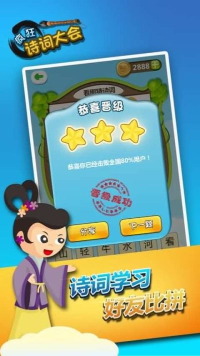 玩中国诗词大会就来《疯狂诗词大会》,有学有玩,休闲益智,是一款寓教于乐的教育小游戏。