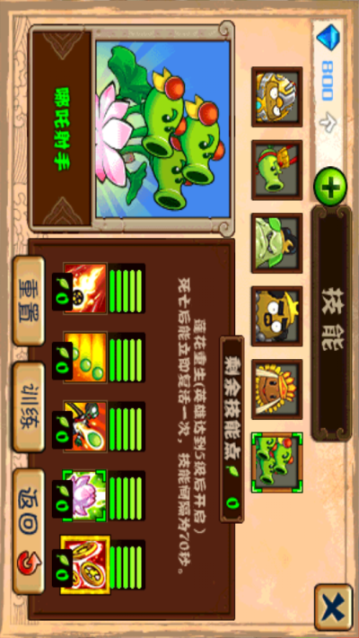 新增“大战织蛛女、三打百骨精、智取火孩儿、降伏黄眉怪、决战牛大王”5大冒险模式关卡设定,从白天到夜晚,从天台到游泳池,场景变化多样。49种功能强大,互不相同的植物,并可收集硬币购买宠物蜗牛等多种可选道具。