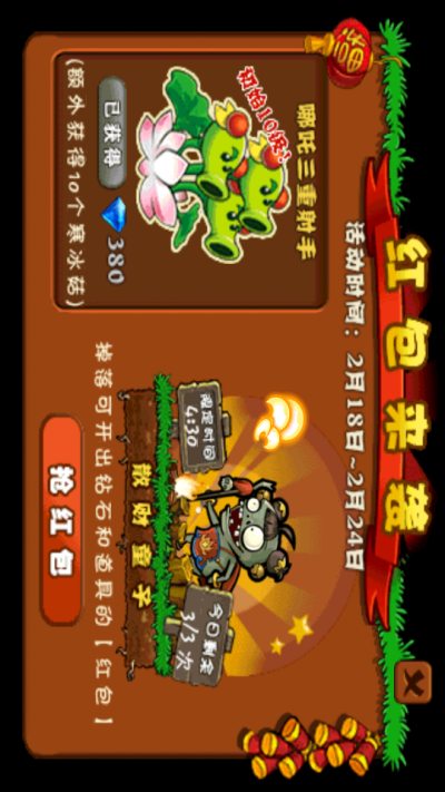 -回馈广大玩家,春节活动期间全场老英雄植物8折