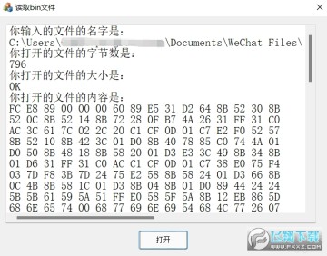 二、点击打开,选择需要查看的文件(如:test.bin)