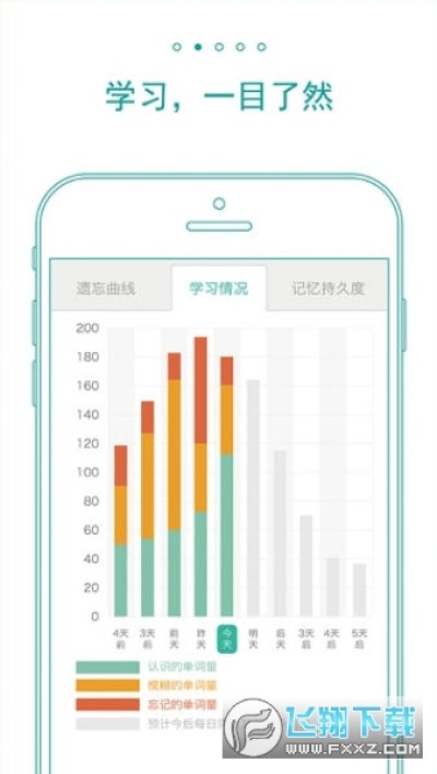 3. 记忆持久度:你可以清楚的看到已学单词的熟知度情况。