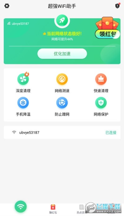 超强WiFi助手红包版是一款非常不错的手机wifi管理软件,现在走到哪都有wifi信号,但不知道密码还是上不了网,有了这款软件,它可以帮你无需密码也能轻松连上周围的wifi进行上网哦!连接wifi后还可以领取红包提现哦!