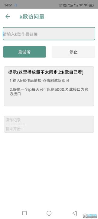 秘阁全民K歌刷试听,是一款可以刷全民k歌刷试听的小工具。该软件操作简单,可以让你的全民k歌中试听量爆表,有效提高你的人气输入链接,每个链接,每天都能刷量!真实量哦!