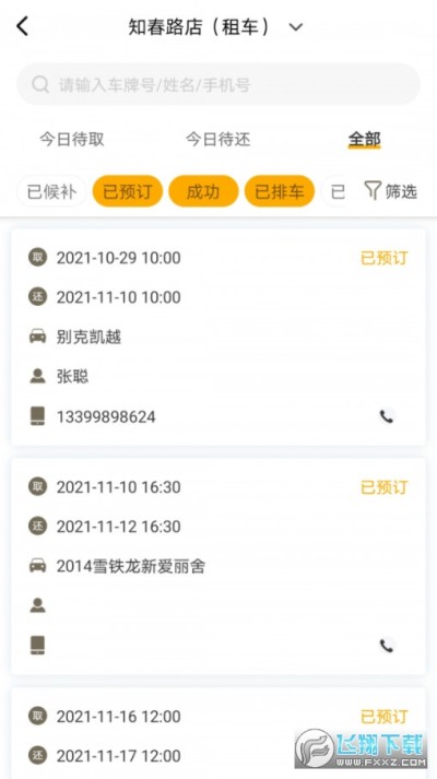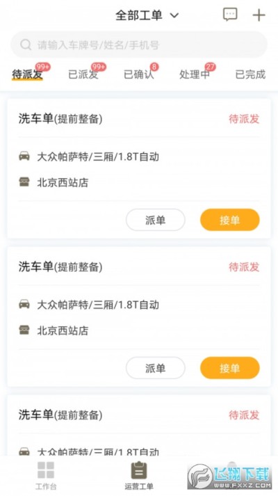 3、可以通过车牌号、姓名等快速的搜索相关的订单信息,高效的去处理。