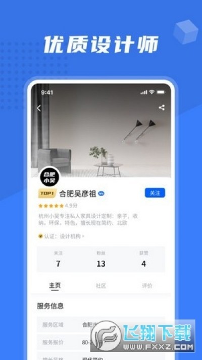 2、优质设计师在线沟通,不管是什么样风格的设计师都是可以在这款软件内找到,选择自己喜欢的风格;