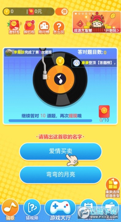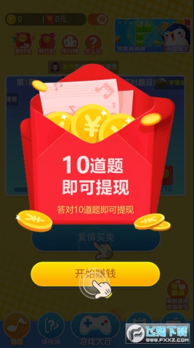《欢萌开心猜歌红包版》是一款猜歌题材的手机赚钱类游戏。这款猜歌游戏登录即可领取现金红包,闯关成功马上即可提现。10题一提现,轻松猜歌,奖励多多随时领取!喜欢听歌猜歌的小伙伴们赶紧下载体验吧!