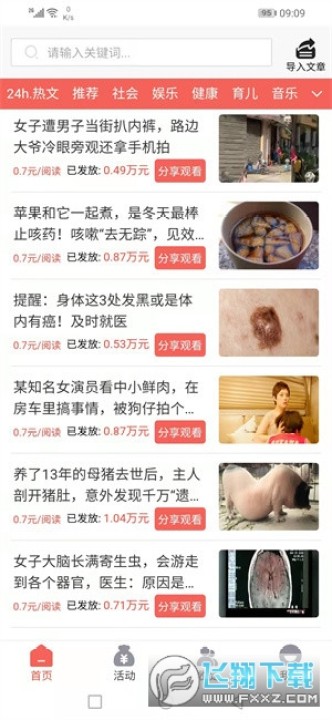 1、点击雷兽宝app内“转发”频道任选一篇文章转发到微信群或者朋友圈,只要有人点击阅读你就能获得现金奖励,阅读的人数越多,你的收益也就越高