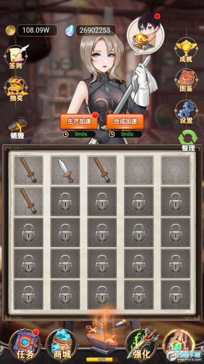 最强铁匠无限金币钻石版是一款卡通风格的模拟经营类手游,玩家扮演勇者因为被黑心商人坑骗挑战魔王失败,决心自己锻造一把宝剑,通过合成的方式升级宝剑,在关卡里消灭魔物敌人获取金币资源,不断的升级宝剑的各种属性,最终击败魔王赢得胜利!