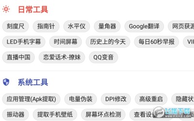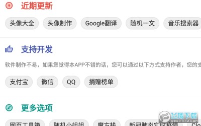本地也有非常多的功能,主要都是一些工具类的,包括图片的处理、电池伪装、高级浏览器、拼接以及网盘链接的解析工具,电池伪装、翻译垃圾查询等等,实用性还是相当不错的,本地有几十种功能,安装包小而且界面的设计简洁。