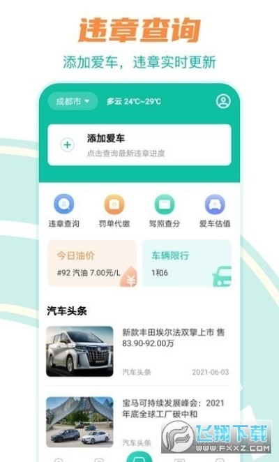 违章查询、违章缴费、机动车信息查询等功能,方便好用