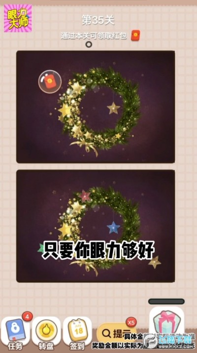 眼力大师游戏是一款趣味的休闲闯关赚红包游戏,海量的关卡内容等你挑战,在这里玩家可以观察场景进行闯关体验,成功闯关即可领取红包,游戏最低0.3元就能免费提现到微信秒到账,对游戏感兴趣的话不妨点击下载试试!