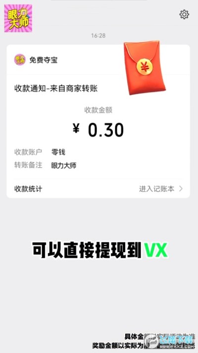 眼力大师,下载APP,看几个广告。提现0.3元,秒到微信零钱!付款商户“免费夺宝”。整个游戏中大家的体验感受是会更加的完美,确实非常值得大家好好的体验一番。