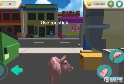 又胖又傻的疯猪谁不喜欢呢,就算不喜欢,你在玩了这个疯猪模拟器之后也会开始喜欢的,在这里里面的每一头猪都非比寻常他们不愿意呆在笼子之中,每一头猪都有上街搞破坏的冲动,撞翻汽车、破坏公物,有些猪尽然还能自己上天??这倒是什么无厘头的游戏啊!