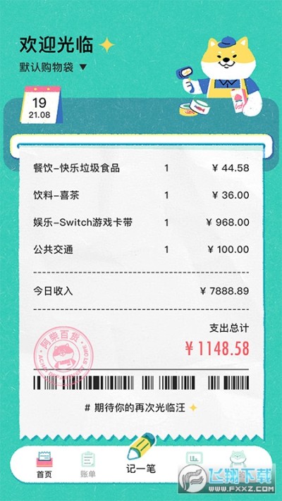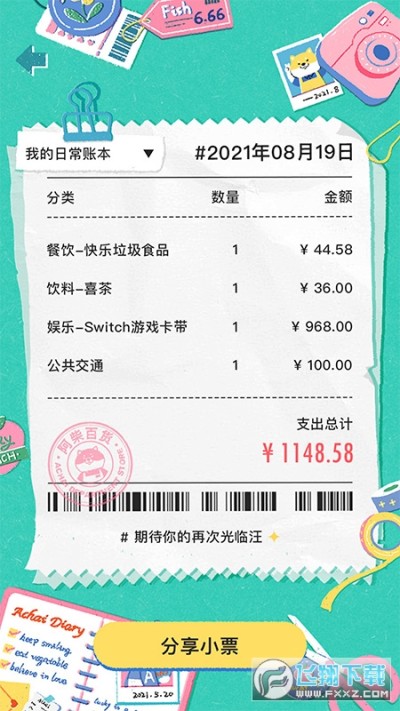 【小票账单】进入首页自动打印今日消费小票,记账也有仪式感