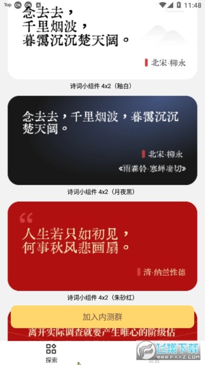 每日都会更新精美的诗词,感受中华文学的精粹,打开手机就能在线赏析。
