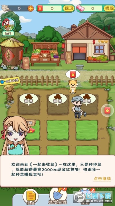 一起来收菜红包版是一款非常好玩的种菜游戏,玩家可以在游戏中种植各种菜,每天都是会有很多收益哦,放置式的操作也是十分的简单哦,每天还有随机的红包奖励得到哦。