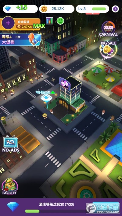 娱乐大都市是一款非常不错的模拟游戏,玩家需要建造自己的酒店以及娱乐场所,努力升级你的店铺,不断地扩大经营,增加客户数量,玩家最终会成为娱乐大亨,有兴趣的玩家快来下载体验吧。