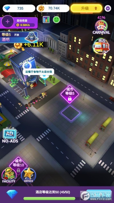 娱乐大都市最新汉化版充满趣味,准备开始疯狂之夜了吗?制定规则,准备营销策略,成为有史以来最富有的大亨!以有限的资金起步、运营并逐步扩大规模。建立起从小型建筑到俱乐部、酒店等各式建筑,吸引大量游客!扩展你的城市和雄心!