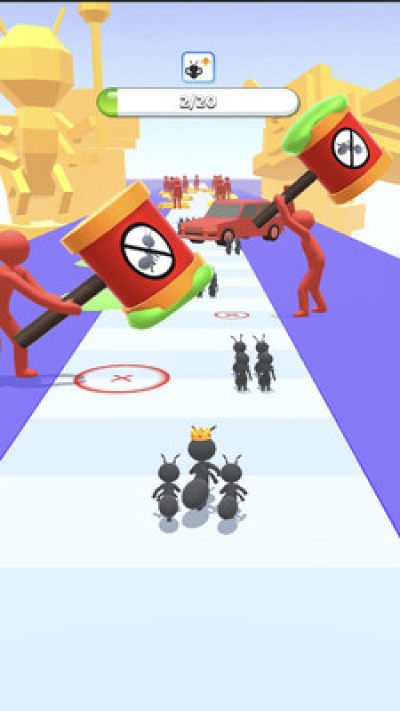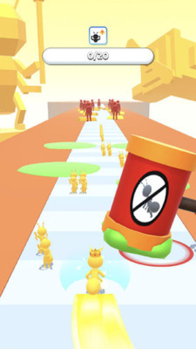蚂蚁进化是一款非常有趣的赛道跑酷类型的游戏,在游戏中玩家需要帮助蚂蚁顺利的通过终点,看似非常的简单,但是会有着非常多的障碍物的危险,玩家需要灵活的去进行躲避,才可以保证蚂蚁的安全,玩起来也是非常的有趣,更好的去锻炼玩家的反应能力,顺利的通过关卡。