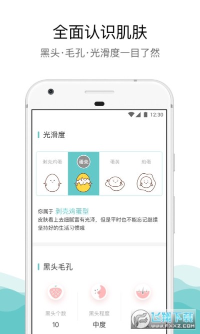 【智能分析】从肌龄、肤色、出油、痘痘、黑头、毛孔、光滑度等多个角度,全面分析肤质