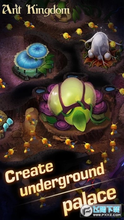 蚂蚁王国安卓版是一款卡通风格的模拟经营手游,玩家将要进入地下世界精英自己的蚂蚁帝国,在蚁穴里建造各种建筑物,收集各种食物道具不断的发展自己的数量,对抗各种强大的昆虫动物,通过策略性的战争玩法消灭其他的敌人,喜欢的小伙伴快来下载吧!