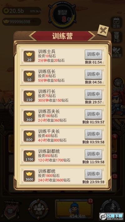 2.通过对不同的兵种进行不同的修炼,来全面加强军队的整体水平;