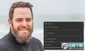 也会自动检测到牙齿和嘴唇。您可以轻松调亮笑容并调整嘴唇的颜色和饱和度。