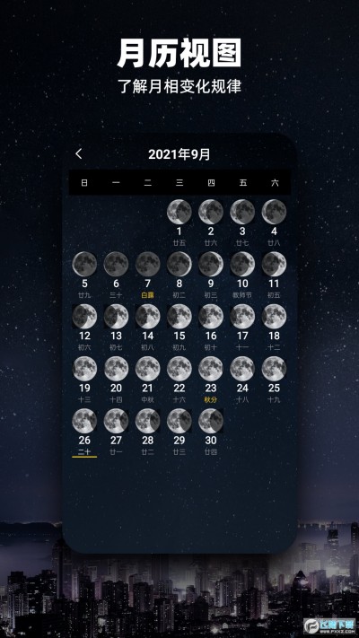 moon月球天象图是款专为喜欢看到月亮的朋友们带来的全新推荐,在这里我们可以看到各种月亮的形状和情况。帮助我们喜欢看到天空美景的朋友观测到更多景象。喜欢天空的朋友可以下载本款软件试试吧!