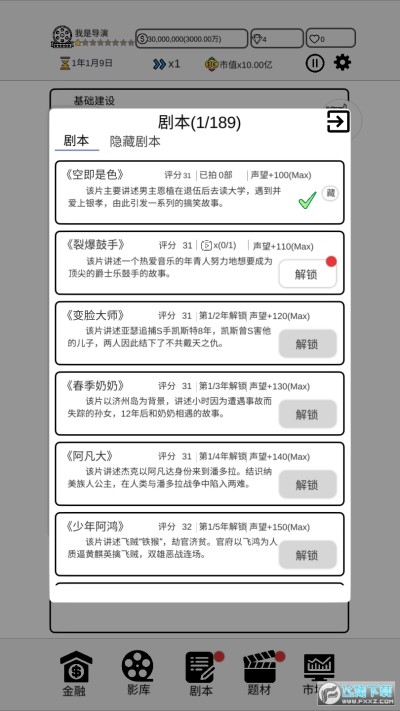 3、游戏中有大量的角色明星,玩家可以根据自己的喜好去解锁各种明星。这样会提高你电影的票房和知名度。