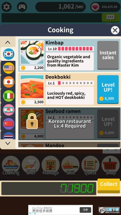 3.你需要合理利用你的现金流,来雇佣和升级你的管理员,让他们的做饭速度、搬运能力、步行速度都能有相应的提升,从而为你争取更多的收益,升级和扩张你的餐厅。