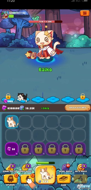 远征:组建一个团队来消灭游戏中的敌人。每只猫都有遗传特征,好好安排你的猫团队,和你的团队一起赢取奖励。