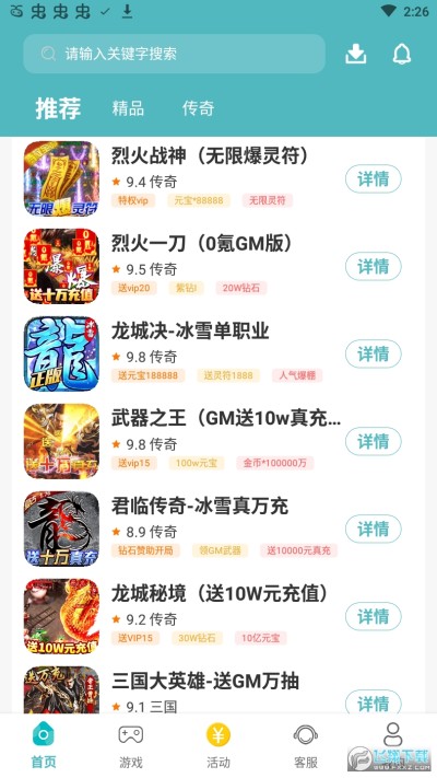 2、集游戏推荐、攻略、礼包、论坛、社交于一体。