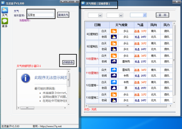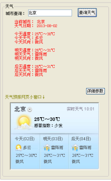 您只需要输入相应的城市一键点击查询天气即可显示今、明、后天的天气,点击详细参数还可以显示湿度,空气质量等详细信息如图: