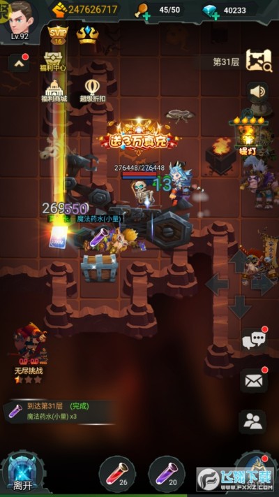 《勇士闯魔窟-送GM40万充》是一款上手简单,玩法有趣,结合roguelike地下城探险与宠物养成的魔性游戏!上线首次登录就有神秘豪礼相送,完成新手引导直接传说神装,爽到你不敢想,进入游戏之后跟着新手引导跑图,把屠夫砍死之后爆出3万元红包,登录游戏每日在线可以免费领取奇葩币兑换红包派送箱,累计领取超过40W红包VIP直升卡直升V15,壕礼天天大放送,每日登录更可以免费兑换3万元红包派送箱,BUG万抽转盘0氪领,更有传说神装免费拿,海量商城应有尽有;深渊黑暗,屏住呼吸,带上你的宠物和提灯,骑上飞龙去冒险吧!