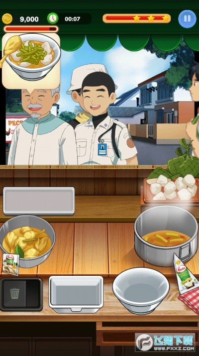 1、玩家进入游戏后会有不同的关卡,通过解锁不同的关卡场景,前往售卖鸡肉粥。