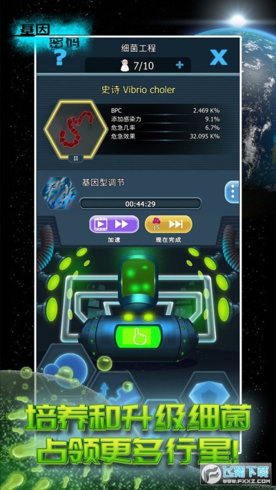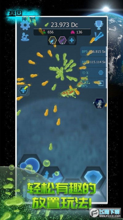 游戏将带你进行一次独特的微观宇宙之旅,助你成为微观世界的星际大亨。通过放置、生产和升级,认识和培养不同的细菌,挑战自我,优化细菌配置,尽可能多地占领微观行星!