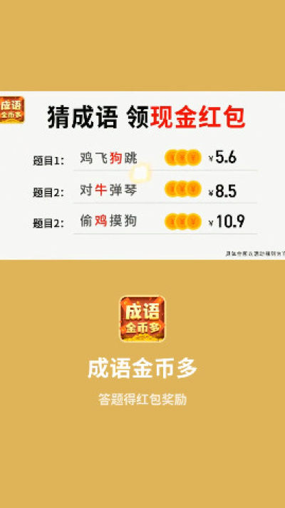成语金币多红包版是一款玩起来回味无穷的成语赢奖励游戏,成语金币多起码有几百个关卡,成语金币多游戏还有详细的成语解释,成语金币多红包版让玩家在玩游戏的同时学习新知识!