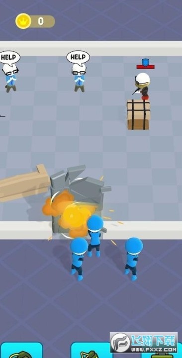 2、采用简约清新的画风,面对各种进击的机器人,你需要运用各种的绳索进行射击,捆绑住他们。