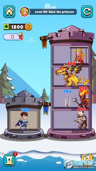 - 明智地移动你的英雄来加电,收集战利品,杀死怪物并拯救公主