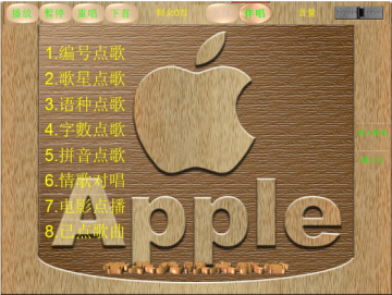 拼音模糊点歌、歌星点歌目前为行业最快捷的,有保存、载入最爱歌曲功能,播放模式设置功能(1,列表播放模式  2,删除模式)。