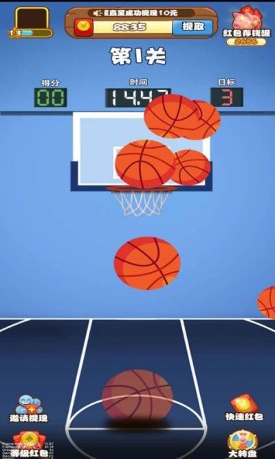 《疯狂投篮红包版》是一款玩游戏可以赚钱的休闲类游戏。这款游戏采用积分的玩法方式,玩家点击屏幕即可体验投篮的趣味,根据你投篮的姿势会获得不同的分值,还可以在游戏过程中获得现金红包的奖励,精心设计的关卡和超爽趣味的玩法,感兴趣的小伙伴们赶紧下载体验吧!