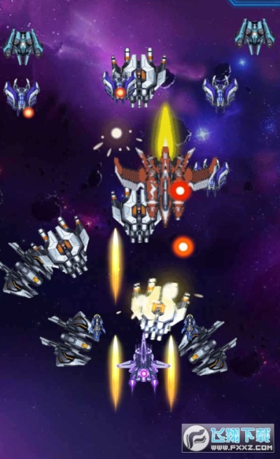 4、通过手指滑动屏幕控制飞行器的走向,实现射击击杀敌人,躲避子弹的目的;