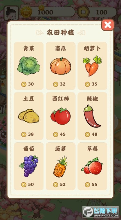 2、多种不同的作物可以选择种植,成长时间和最终的收益都会有一定区别。