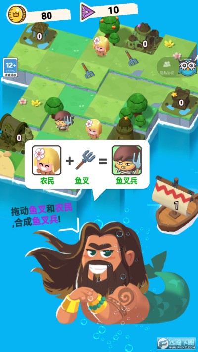 2、特殊强大的英雄士兵,搭配策略性征战,搜集各种资源,填充荒岛,建立海上王国